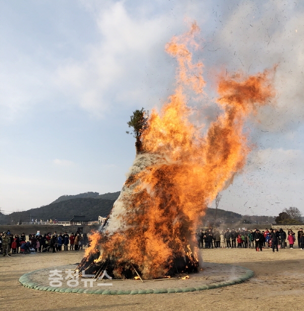 이어 지난해 묵은 액운을 없애고 한해 건강과 풍요를 기원하기 위해 볏짚과 솔가지 등으로 만든 달집을 태우는 것으로 행사가 마무리됐다.