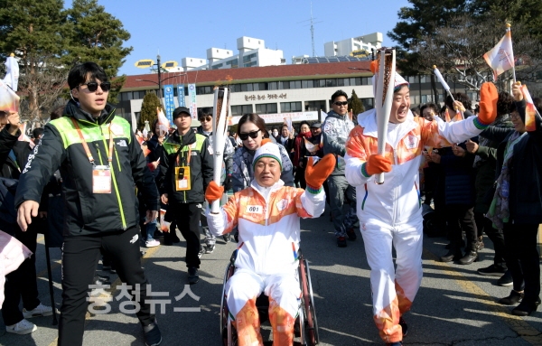 봉송주자는 ‘동행’을 의미하는 뜻에서 장애인과 비장애인으로 구성됐으며, 논산시는 총 4개 슬롯 8명의 주자가 배정돼 1구간 당 2명의 주자가 성화를 봉송했다.