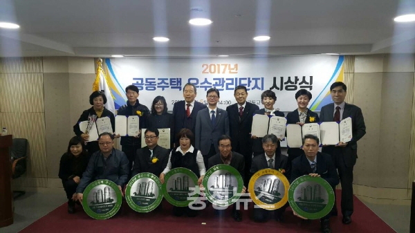 대전 서구(구청장 장종태)는 국토교통부에서 주관한 2017 공동주택 우수관리단지 평가에서 ‘탄방동 한우리 아파트’가 우수관리단지로 선정돼 5일 한국감정원 서울사무소에서 국토교통부 장관상을 받았다고 밝혔다.