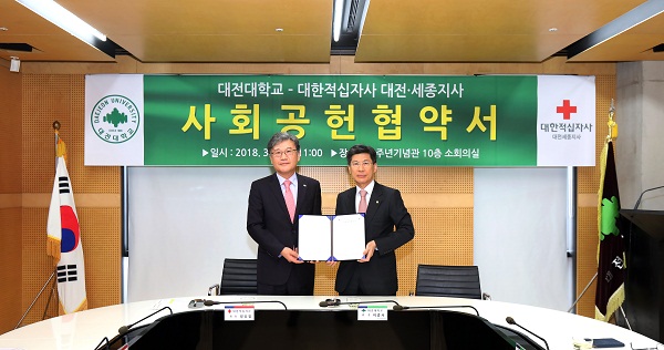 대전대(총장 이종서)는 5일 대학 30주년기념관 10층 소회의실에서 대한적십자사 대전•세종지사(회장 정상철)와 사회공헌을 위한 업무협약(MOU)을 체결했다.