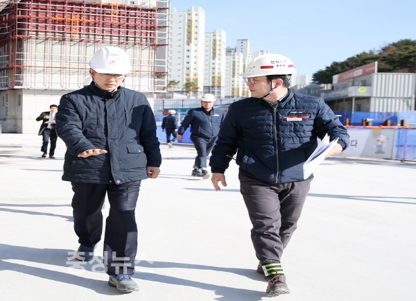이 시장은 건설현장을 둘러보며 공사추진현황을 청취했으며, 근로자들을 격려하고 작업 시 각별히 주의할 것을 당부했다.