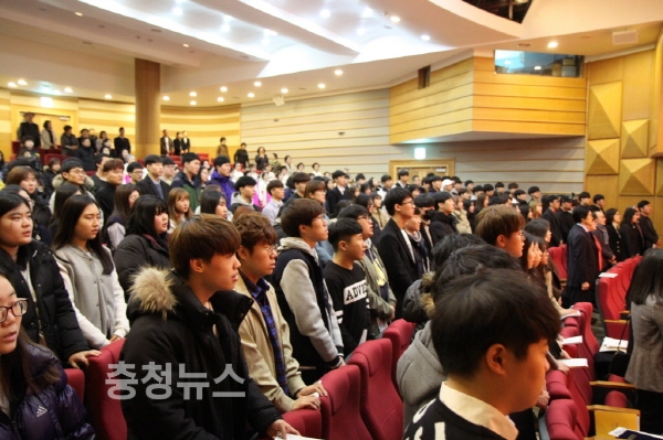 이번 입학식에는 총 168명으로 학부 146명, 대학원 석사과정 2명, 박사과정 3명, 금강어학원 17명을 대표해 김연수(글로벌융합학부), 신현지(글로벌융합학부) 학생이 지성인으로서 새 출발을 다짐하는 입학선서를 했다.