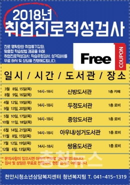 취업진로적성검사는 미취업을 포함한 니트(NEET)상태의 청년을 지원하고 발굴하기 위한 찾아가는 상담프로그램으로 8일 신방도서관을 시작으로 관내 5개 도서관에서 심리 및 진로상담 지원을 내용으로 진행된다.