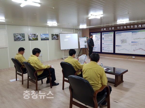 재해예방사업장 현장사무실내 사업추진현황 보고 모습