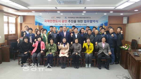 부여군 재난평가-국제안전도시 공인 추진을 위한 업무협약식 장면