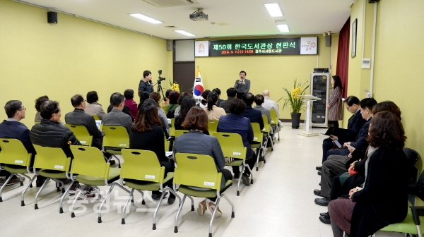 오시덕 시장은 이날 인사말을 통해 “제50회 한국도서관상 수상을 시작으로 시민의 행복을 가꾸는 도서관 서비스 향상에 앞장서겠다”며, “앞으로도 시민의 보다 나은 문화생활향유를 위해 최선을 다하겠다”고 말했다.
