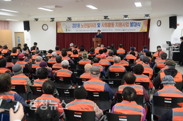 충남 공주시(시장 오시덕)가 지난 7일 공주시노인종합복지관 대강당에서 ‘2018년 노인일자리 및 사회활동 지원사업 통합발대식’을 개최했다고 밝혔다.