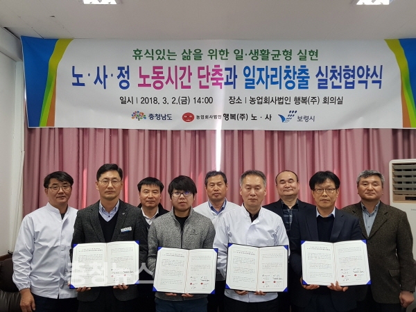 이번 협약에 따라 충청남도와 보령시, 행복주식회사의 노 ․ 사 모두는 노동시간 단축을 통한 일자리 창출이 산업 발전의 토대임을 인식하고 기업의 지속적인 발전과 근로자의 삶의 질 향상을 통한 좋은 일자리 만들기에 적극 협력해 나가기로 했다.