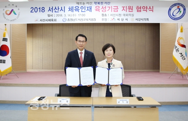 이날 시 체육회장인 이완섭 시장과 이종렬 서산교육지원청 교육장은 우수 선수 조기 발굴과 체계적인 관리를 위해 다각적인 노력을 기울인다는 협약을 맺었다.