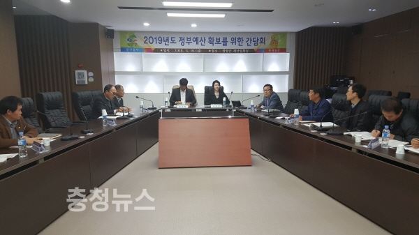 충남 청양군이 16일 군청 재난상황실에서 2019년도 정부예산 확보를 위한 국회의원 보좌진과의 간담회를 개최하고 긴밀한 협조체계를 구축했다.