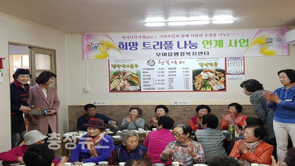 충남 부여읍은 지난 20일 지역 내 소외계층 어르신을 대상으로 ‘희망 트리플 나눔 행사’를 실시했다.