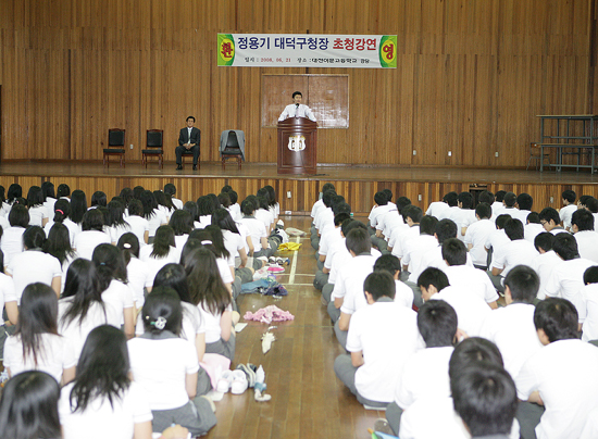 정용기 대덕구청장은 지난 21일 대전이문고등학교(교장 정석순)에서 2학년 남.여학생 220명을 대상으로 ‘목표를 갖고 꿈을 이루자’라는 주제로 특별 강연을 가졌다. 이날 구청장은 본인의 인생경험담을 바탕으로 한 강연으로 학생들에게 꿈과 희망의 메시지를 전했다. ▲ 이문고 특강하는 정용기 청장 저작권자 © 충청뉴스 무단전재 및 재배포 금지 임해혁 기자 다른기사 보기 기사가 마음에 드셨나요? 충청뉴스 좋은 기사 후원하기 1,000원 3,000원 5,000원 10,000원 30,000원 50,000원 직접입력 비회원 약관동의하기 ※ 소중한 후원금은 더 좋은 기사를 만드는데 쓰겠습니다.