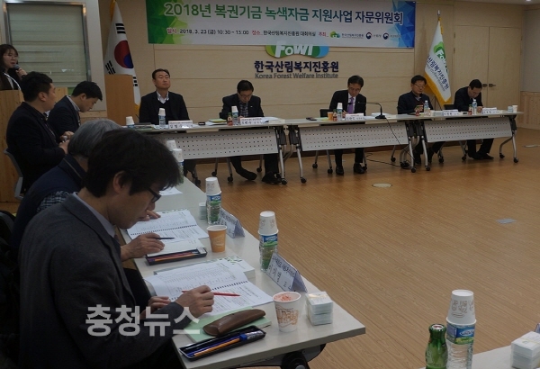 23일 대전 서구 둔산동 한국산림복지진흥원 대회의실에서 ‘2018년 복권기금 녹색자금 지원사업 자문위원회’가 열렸다.