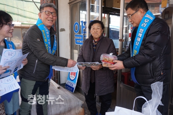 논산시, 어르신 반찬배달 및 안반운동 캠페인 활동 장면