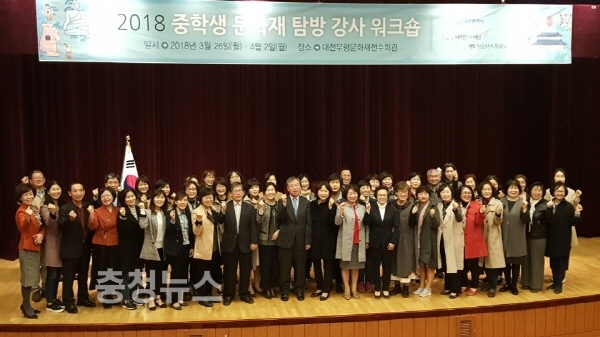 대전문화재단(대표이사 권한대행 이화섭(대전광역시 문화체육관광국장))은 2016년도 처음 시작한 <미래를 여는 중학생 문화재 탐방>사업의 성공적인 추진을 위해 <2018 문화재 탐방강사 워크숍>을 26일, 오는 4월 2일, 양일에 걸쳐 대전무형문화재전수회관에서 운영한다고 밝혔다.