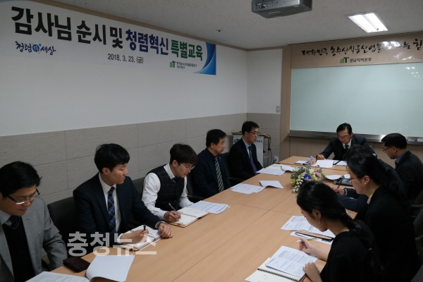 한국농수산식품유통공사(aT, 사장 이병호) 김명곤 상임감사는 지난 22일부터 23일까지 2일간 aT 제주지역본부를 비롯, 부산울산 및 경남지역본부 주요 사업현장을 찾아 직원들을 격려하고 청렴문화 전파를 위한 청렴교육을 실시했다.