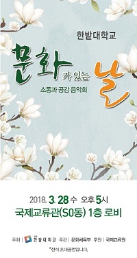 한밭대(총장 송하영)는 28일 오후 5시 국제교류관에서 '문화가 있는 날, 소통과 공감 음악회'를 개최한다.