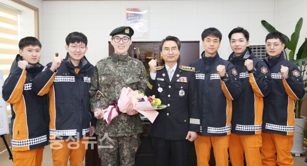 이날 전역자 주정민 수방은 "23개월 동안 많은 것을 가르쳐 주시며 도와주신 직원들에게 감사하다"며 "꼭 멋진 소방공무원이 될 수 있도록 노력하겠다"고 전역 소감을 말했다.
