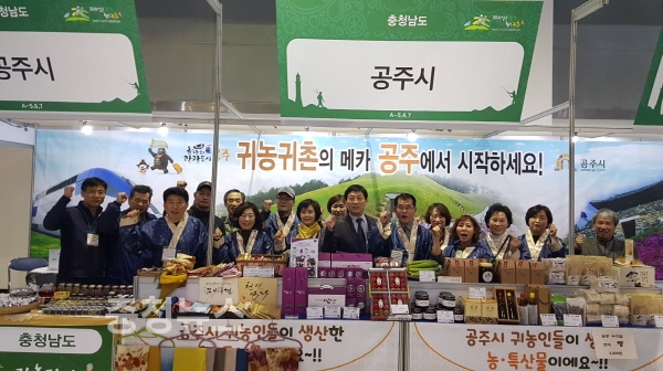특히, 귀농귀촌 관련 상담요원과 공주에 성공적으로 정착한 선배 귀농 멘토 등 60여명이 참여해 공주시 귀농·귀촌 정책을 효과적으로 홍보하는 것은 물론 귀농인이 직접 생산한 농·특산물 40여종을 전시·판매하기도 했다.
