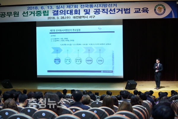 대전 서구(구청장 장종태)는 28일 구청 대강당에서 강철식 부구청장을 비롯해 직원 400여 명이 참석한 가운데, 공무원 선거 중립 결의대회를 열었다고 밝혔다.