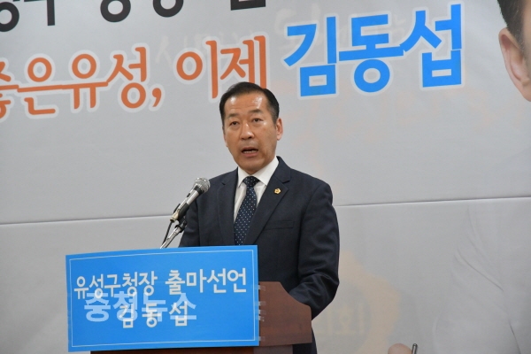 더불어민주당 김동섭 대전시의회 의원이 6월 지방선거 유성구청장 출마를 공식 선언했다.