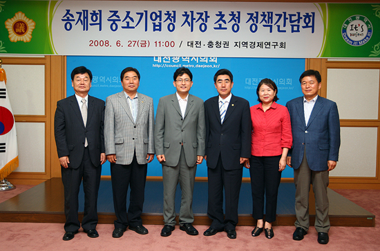 송재희 중소기업청 차장 초청 강연으로 이루어진 이번 간담회에서 송재희 중소기업청 차장은 “소비도시에서 경제도시로 탈바꿈하고, 특히 과학비지니스벨트, 도시형 전략사업 등을 활용해야 한다” 면서 그 방안으로 “지식경제부와 교육과학부를 유치해 시너지 효과를 창출하고 지자체간 상생협약을 통해 지역발전을 도모해야 한다”고 밝혔다.