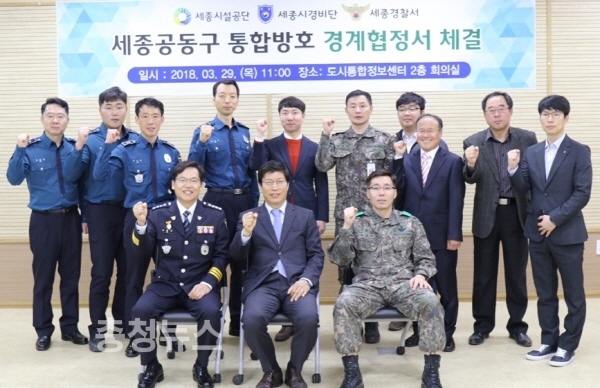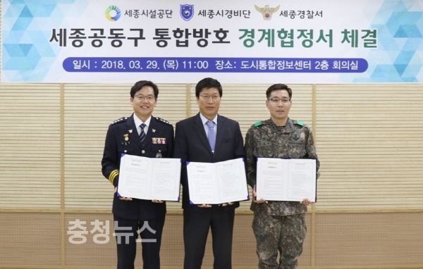 세종특별자치시시설관리설공단(이사장 신인섭)은 29일 도시통합정보센터에서 국가중요시설인 세종공동구 방호를 위하여 세종경찰서 및 세종시경비단과 ‘세종공동구 경계협정서’를 체결했다.