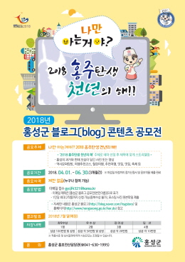 충남 홍성군이 ‘나만 아는 거야? 2018 홍주탄생 천년의 해!’를 주제로 2018년 블로그 콘텐츠 공모전을 개최한다.