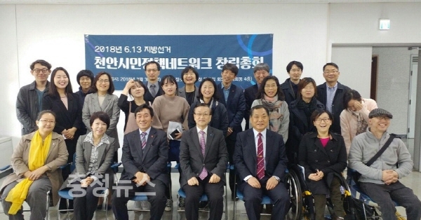 30일(금) 오전 10시, 천안시의회 다목적회의실 4층에서는 천안지역 29개 시민사회단체와 17명의 시민정책자문단이 함께 하는 ‘2018년 6.13지방선거 천안시민정책네트워크’(이하 시민정책넷) 창립총회가 열렸다.