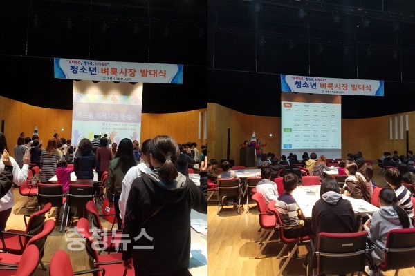 충남 계룡시자원봉사센터(센터장 김창성)는 지난달 31일 계룡 문화예술의전당 다목적실에서 관내 청소년 및 학부모 운영리더 100여 명이 참석한 가운데 ‘청소년 벼룩시장’ 발대식을 가졌다.