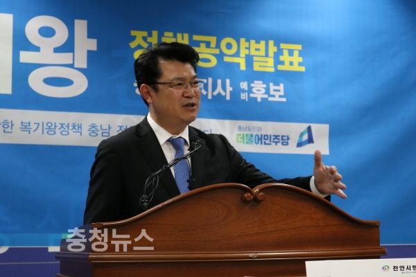 더불어민주당 복기왕 충남도지사 예비후보가 천안시 4대 발전 공약을 발표했다.