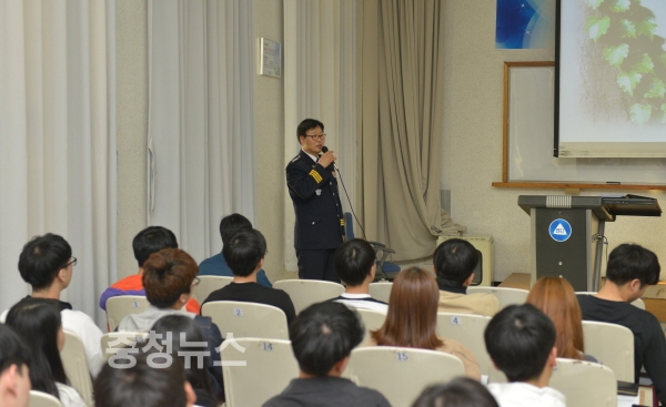 김 서장은 ‘존경받는 경찰이 되기 위한 마음가짐’이라는 주제로 강의를 진행했다.