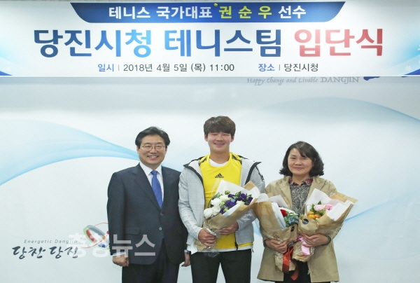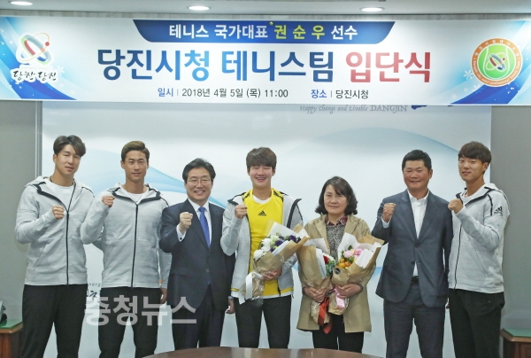 입단식에 함께 한 김홍장 당진시장은 “당진시와 대한민국, 그리고 미래의 테니스 스타를 꿈꾸는 꿈나무들을 위해 권 선수가 최선을 다해 주길 바란다”며 “시에서도 좋은 경기력을 유지할 수 있도록 아낌없이 지원할 것”이라고 말했다.