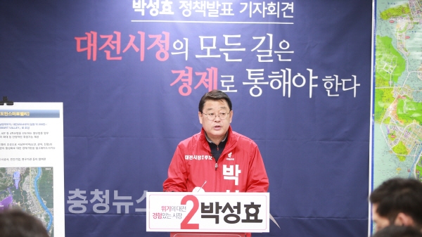 자유한국당 박성효 예비후보가 5일 선거사무소에서 첫 번째 정책발표회를 갖고, ‘도시 자체가 성장 동력’이라는 신개념의 도시계획을 제시했다.
