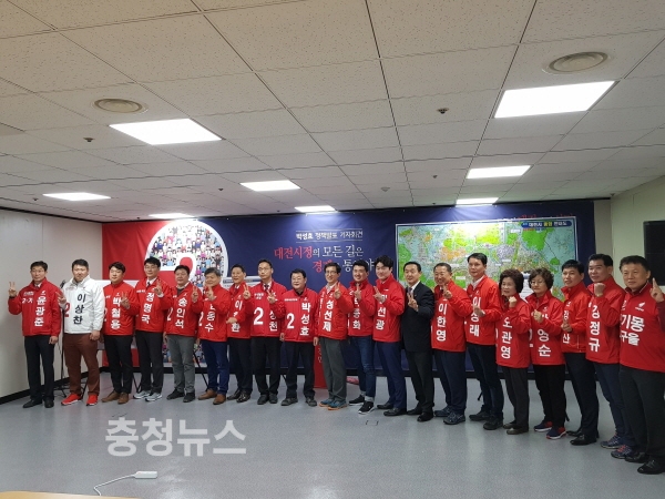 이날 행사에는 동구청장 성선제 후보,서구청장 조성천 후보,유성구청장 권영진 후보, 동구1선거구 시의원 송인석, 2선거구 이상래, 3선거구 정명국, 중구 2선거구 서구2선거구 이상찬,김선광, 서구 6선거구 박종화 시의원 후보, 대덕1 박희진 시의원후보 동구가 오관영,동구나 강정규,동구다 박철용 동구라박영순,구의원후보, 서구바 이한영,서구라 김경석, 손해미 서구마, 강노산 구의원후보,유성가 김동수, 유성다 유광준, 유성라 이희환 구의원후보 등이 참석했다.