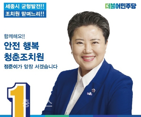 정준이 세종시의원 제3선구 예비후보는 5일 조치원읍 맏며느리로 “총 5900억 청춘 조치원 프로젝트Ⅱ를 충실히 해내고 앞으로 더좋은 조치원을 만들겠다”고 밝혔다.