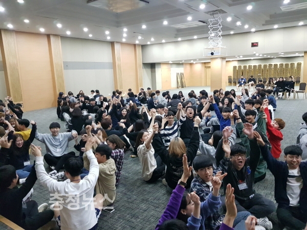 중부대 학생상담센터 주최로 진행된 프로그램은 팀빌딩 전문 강사들이 MT 장소에 직접 찾아가 “교육적 목적을 제시하고 대학생활적응능력을 향상시켜 다 같이 하나 되는 팀빌딩”이라는 주제 진행됐다.