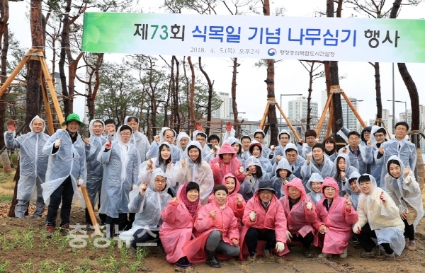 행복청(청장 이원재)은 제73회 식목일을 맞아 5일 행정중심복합도시 내 나성동(2-4생활권) 금강수변공원에서 식목 행사를 가졌다.