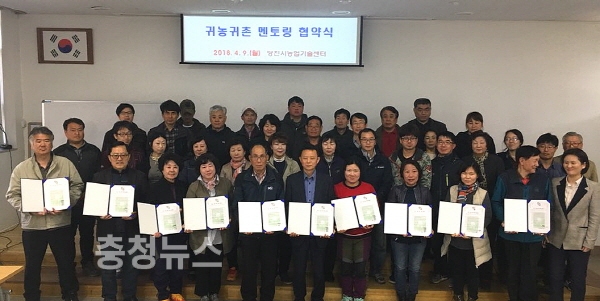 귀농지원단의 선배 귀농인과 새내기 귀농인 23명과 9일 멘토멘티 협약식을 가졌다.