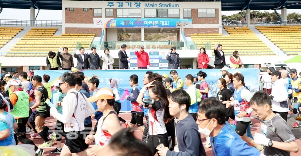 남자 풀코스에 참가한 이희문(강원도 인재) 선수가 전년보다 7분 22초 앞당긴 2시 39분 23초를, 남자 하프코스에 참가한 김수용(서산시) 선수도 2분 21초 앞당긴 1시 14분 24초를 기록했다.