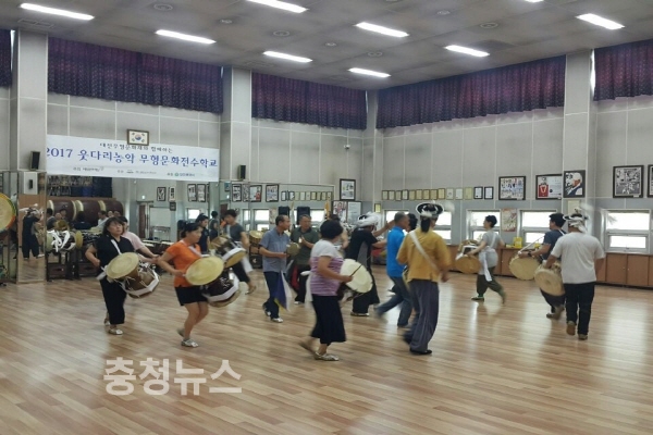 한편 웃다리농악은 지난 1989년 대전시 무형문화재 제1호로 지정되 었으며 현재 유성구 문지동에 소재한 웃다리농악전수교육관에서 웃 다리농악보존회(회장 송덕수)를 주축으로 연중 교육, 공연, 캠프 등 다양한 사업들을 운영하고 있다.