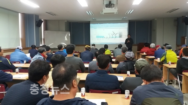 충남 아산시농업기술센터(소장 유지원)는 9일 오후 2시부터 농업기술센터 교육관에서 직파재배 희망농업인 60여명을 대상으로 벼 직파재배를 성공적으로 실천하기 위한 철분코팅 무논점파 재배기술교육을 실시했다.