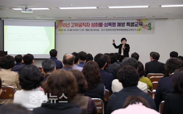 충남 계룡시(시장 최홍묵)는 지난 10일 시청 회의실에서 계룡시 고위공직자 등 100여명의 공무원이 참석한 가운데 성희롱‧성폭력예방 특별교육을 실시했다고 밝혔다.