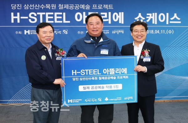 당진시에 따르면 현대제철은 11일 삼선산수목원에서 오명석 현대제철 당진제철소장(부사장)과 당진시청 관계자 등 40여 명이 참석한 가운데 철 제공공예술 프로젝트 ‘H-Steel 아뜰리에(ATELIER)’ 쇼케이스를 개최하고 ‘철제 공공예술 문화공간’에 설치된 공공예술조형물을 공개했다.