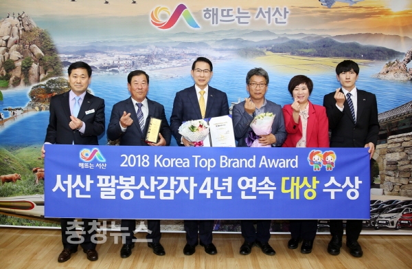 충남 서산시는 지난 11일 서울 그랜드 힐튼호텔에서 열린 ‘2018 코리아 탑 브랜드 어워드’ 특산품 부문에서 팔봉산 감자가 대상을 수상했다고 밝혔다.