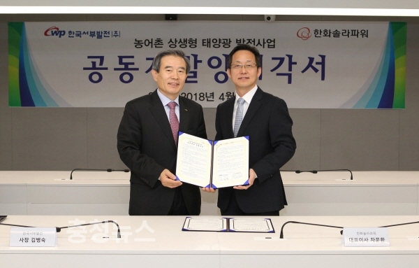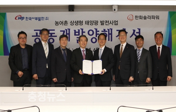 한국서부발전(사장 김병숙)은 12일 한화솔라파워(대표이사 차문환)와 「농어촌 상생형 태양광 발전사업 공동개발」을 위한 양해각서를 체결했다.