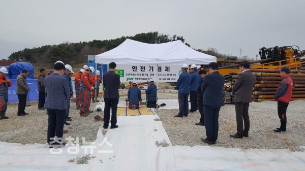 홍성군은 이날 서부면 남당리 현장에서 주민, 현장관계자, 관련공무원 등 20여명이 참석한 가운데 안전기원제를 지냈다.