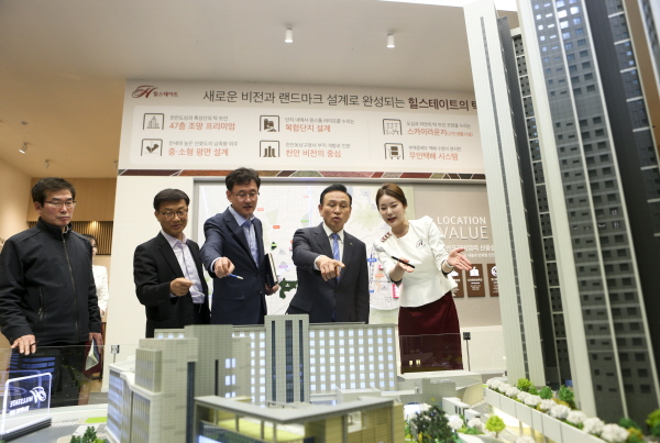 특히 주택도시기금 도시계정이 지원하는 제1호 도시재생사업 ‘천안 동남구청사부지 도시재생사업’을 통해 공급되는 상징성을 지녀 견본주택을 찾은 수요자들이 높은 관심을 나타냈다.