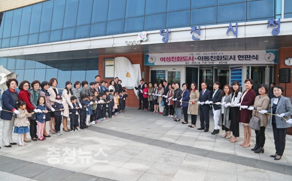 충남 당진시가 17일 당진시청사 1층에서 아동친화도시와 여성친화도시 현판식을 가지고 아동.여성친화도시 시대의 출발을 알렸다.
