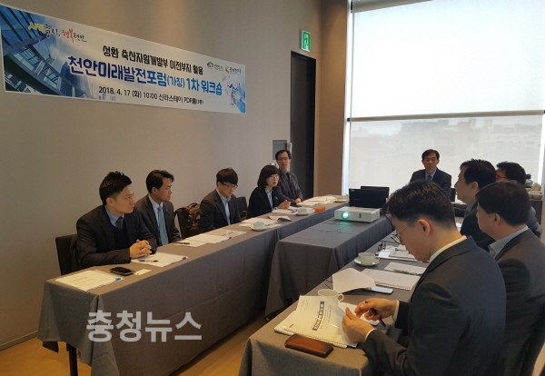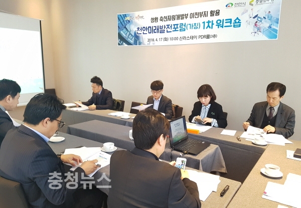 시는 17일 오전 신라스테이 천안에서 이필영 부시장, 충남연구원, 외부 전문가가 참석한 가운데 자개부 이전부지 활용을 위한 ‘천안 미래발전 포럼’(가칭) 1차 워크숍을 열고 포럼 운영 방안과 향후 일정에 대해 협의했다.